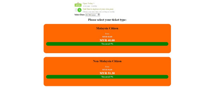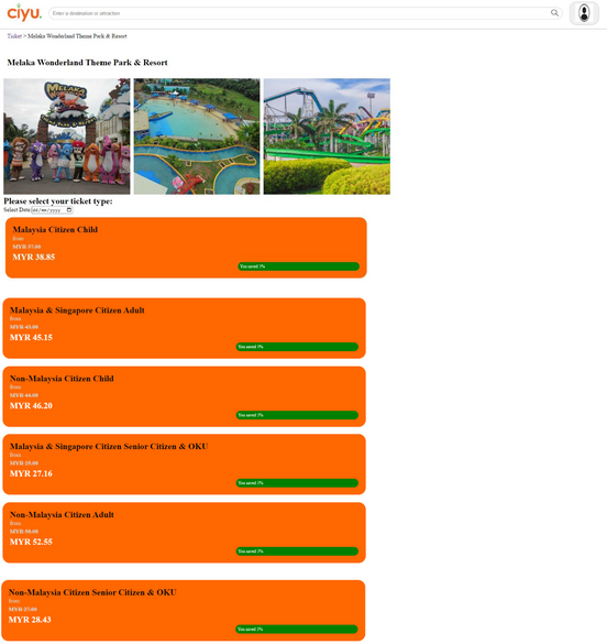 Selected Ticket Page (Melaka Wonderland Theme Park & Resort)