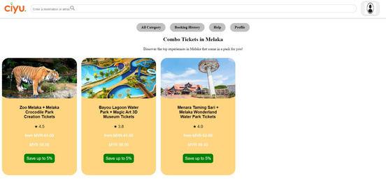 Selected Combo Page (Zoo Melaka + Melaka Crocodile Recreational Park)